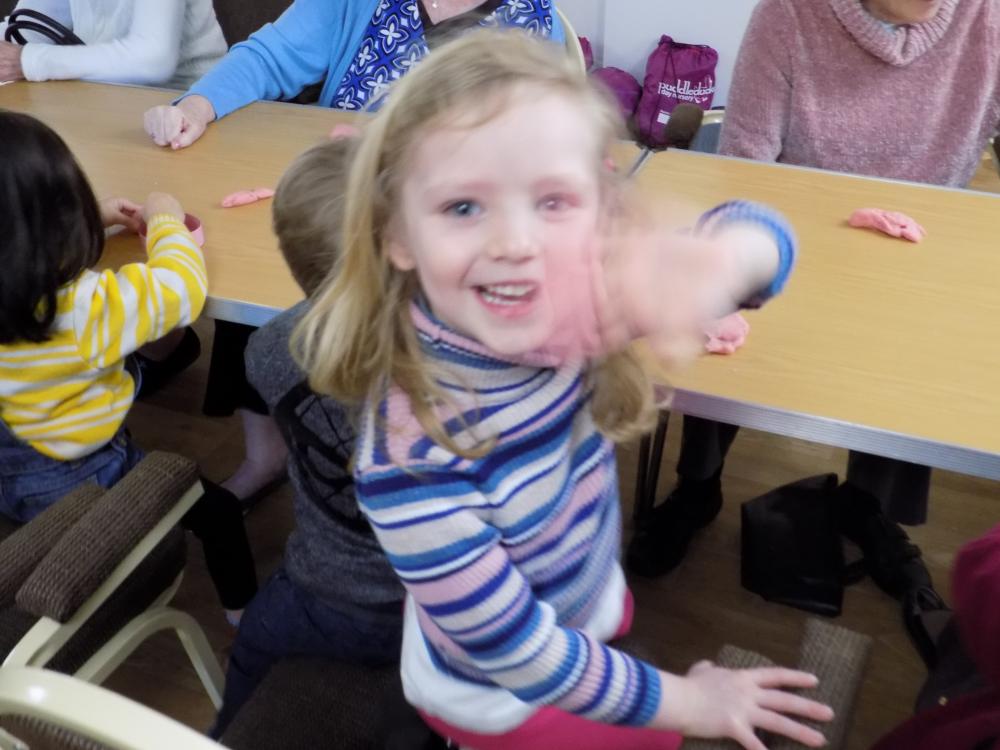 The children and staff at Puddleducks had prepared activities and it was a fun-filled “valentines themed” morning when they sang songs together, did modelling with glitter and heart-filled play dough and made love bugs, which the residents got to keep in their flats!