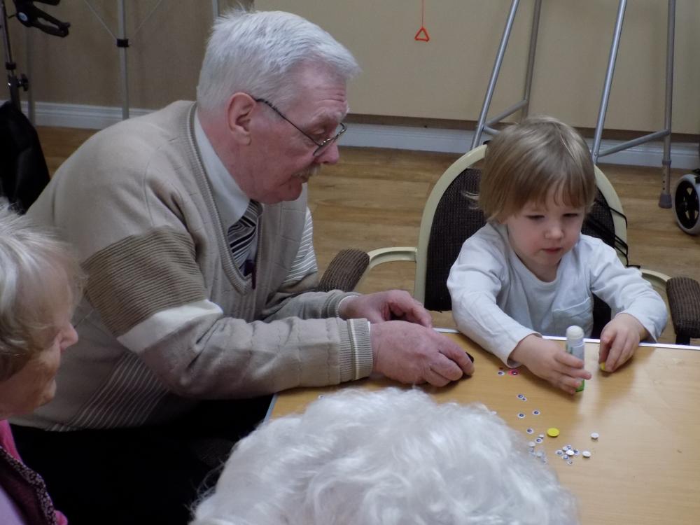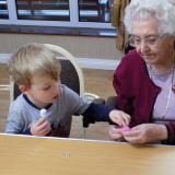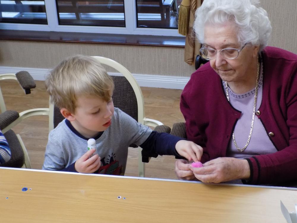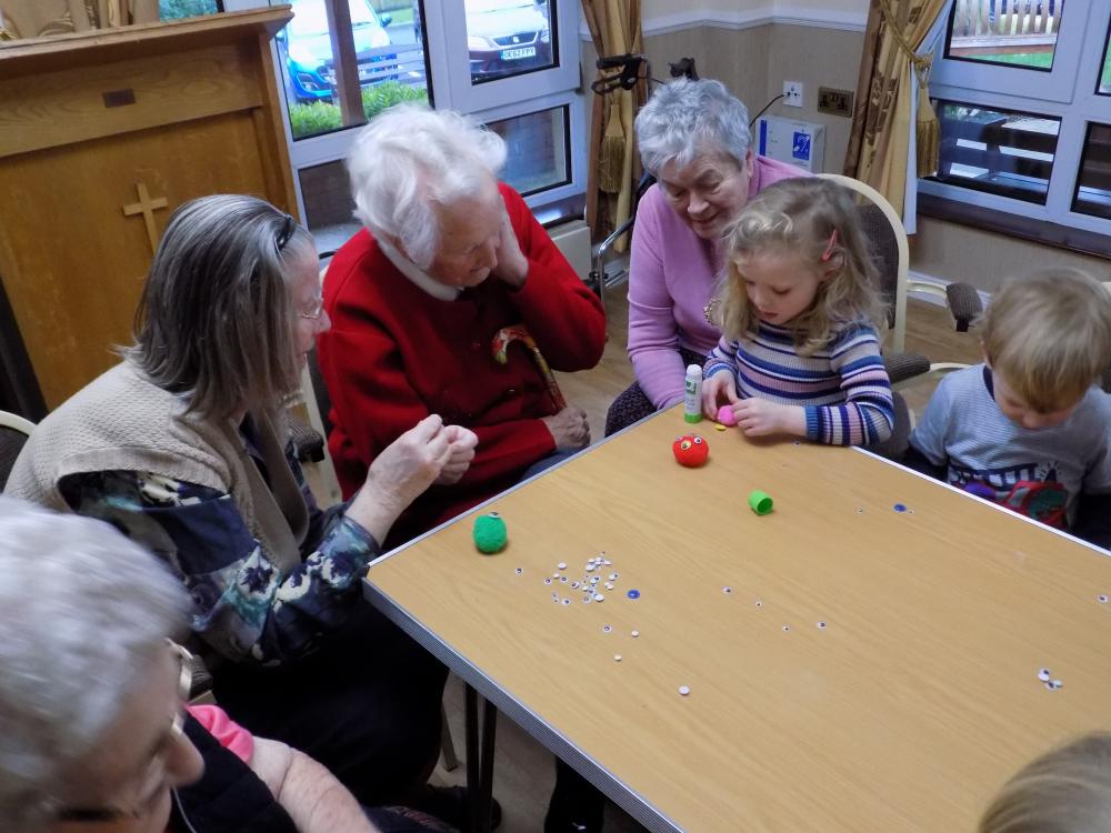 Following the success of their first visit to Kirk House last year, children (aged 3-5 years) from BCM's Puddleducks Day Nursery were excited to join their new friends for a second morning of fun and activities.  But it wasn't just the children who were looking forward to it!  The residents were delighted to once again welcome the children to their home and to enjoy sharing in their energy and zest for life.